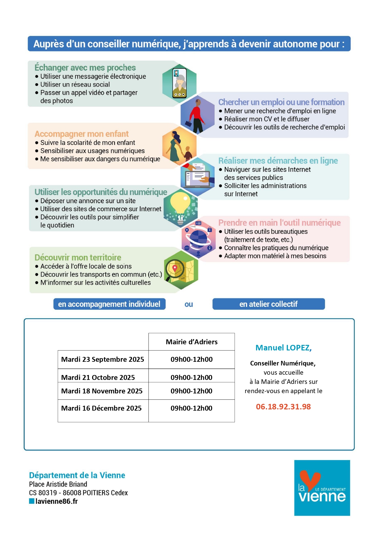 Renseignements : 06 18 92 31 98 ou mlopez@departement86.fr